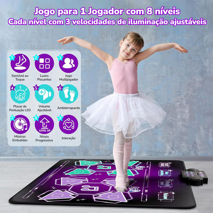 Aqui está o texto ajustado conforme solicitado (iniciais maiúsculas, com preposições em minúsculo): Tapete de Dança, Tapete de Dança Duplo para Crianças, Tapete de Dança Rítmica Infantil com Diferentes Níveis de Dificuldade KJ9080DZ