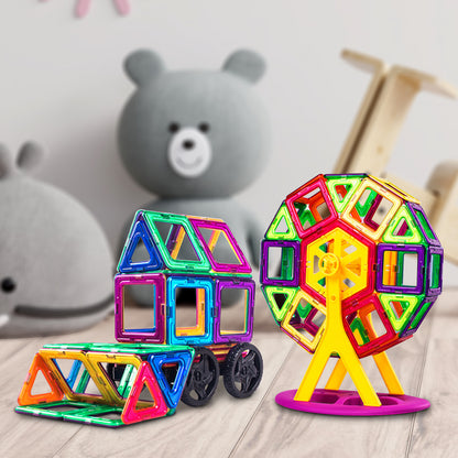 Os blocos magnéticos são o presente perfeito para quem quer incentivar as crianças a desenvolverem a criatividade e o raciocínio lógico.A criança aprende a lidar com as formas geométricas, as cores e a dimensão espacial.
