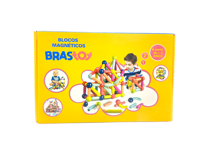 Brastoy Blocos De Montar Magnéticos 68 Peças Em Caixa BM02