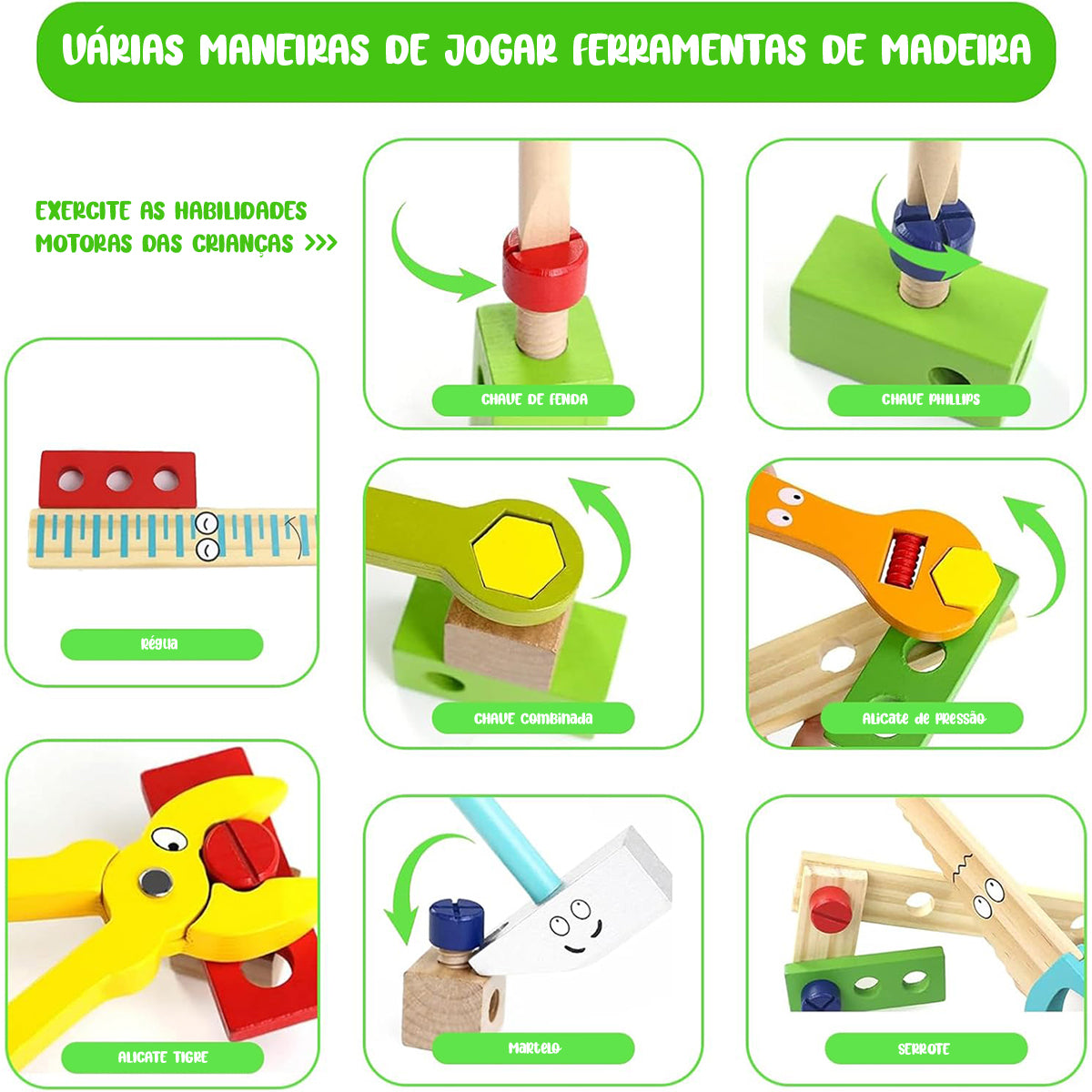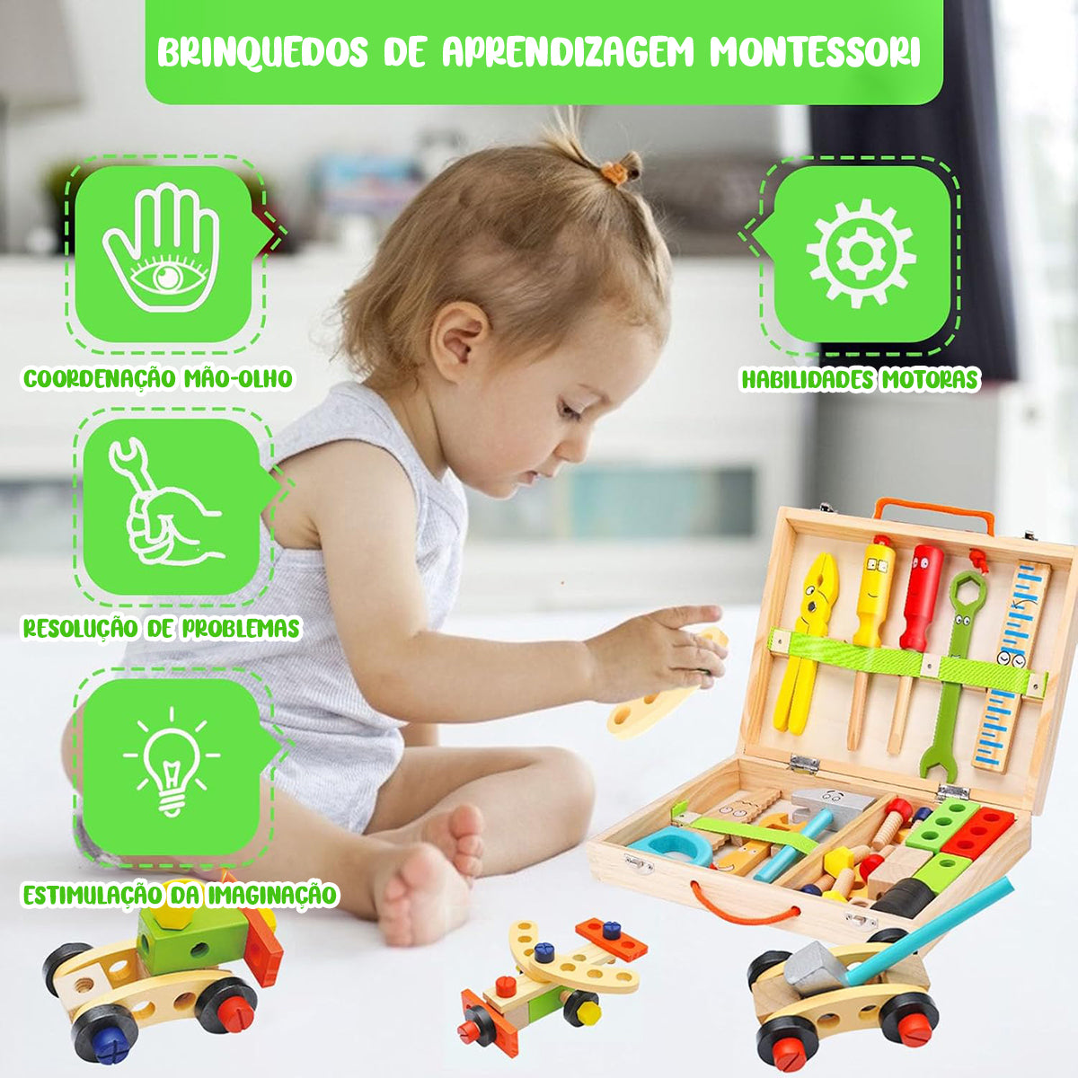 Brastoy Kit Caixa Maleta Madeira Infantil Com Ferramentas Montessori OTA-BM125