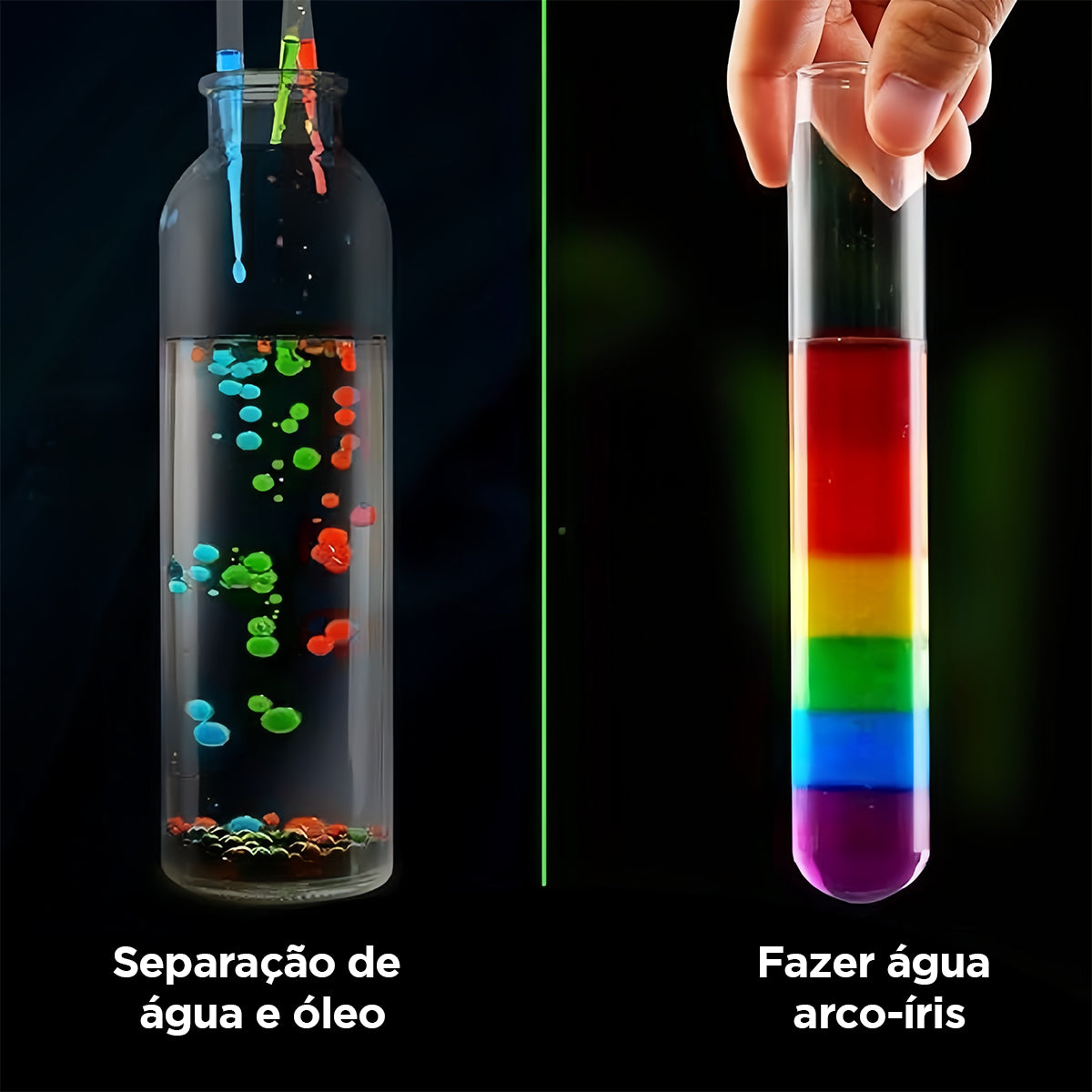 【✨Seguro e Sem Preocupações para Diversão Científica】Este brinquedo educativo STEM de experimentos contém certificação INMETRO, garantindo total confiança para você e segurança para as crianças durante o uso — os reagentes químicos são embalados cuidadosamente em frascos separados com rótulos claros que indicam os ingredientes, evitando confusões e riscos, enquanto as tampas dos frascos são projetadas para abrir facilmente (ideal para crianças) e fechar hermeticamente após o uso, prevenindo a deterioração dos reagentes, permitindo reutilização e prolongando a diversão com experimentos científicos.